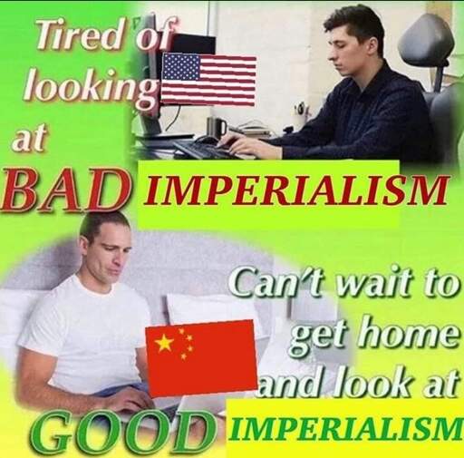 I already said, I love China, it’s great and getting better. It could get even better if it actually worked toward socialism instead of falling into the trap the people that used to exploit it did, trying to exploit other poorer countries.