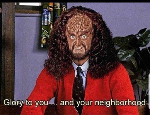 People joke, but growing up watching Mr Gowron’s Neighborhood taught me so much about honor. I look around these days and think how much better off our society would be if more warriors had watched him as children.