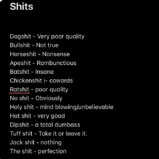 Since so many of you suggested additions, I’m just going to list them all in one place. Let’s create a community-made enzycrapedia of shit-related terms and phrases!