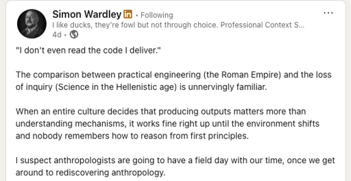 arrow-up1191arrow-down1external-linkNobody knows how the whole system workssurfingcomplexity.blogcodeinabox@programming.dev to Programming@programming.devEnglish · 12 days agomessage-square26linkfedilink