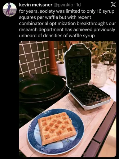 minus-squarecaptainlezbian@lemmy.worldlinkfedilinkEnglisharrow-up5·1 day agoThe big perk of waffles is the surface area results in a lot of crispy with some fluffy. The fact that it holds syrup is just a perk