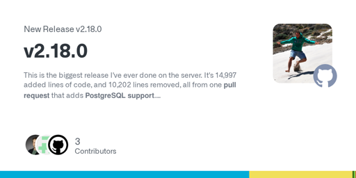 This is the biggest release I’ve ever done on the server. It’s 14,997 added lines of code, and 10,202 lines removed