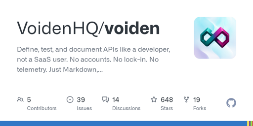 Voiden is an offline-first, git-native API tool built on Markdown Voiden is an API client we have been building that takes a different approach from most existing tools.