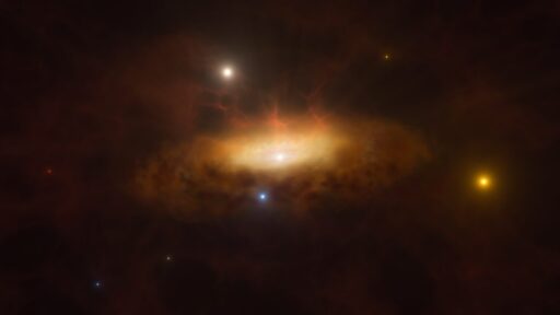The brightening of SDSS1335_0728 in the constellation Virgo, after decades of quietude, was first detected by the Zwicky Transient Facility telescope. Its supermassive black hole is estimated to be about 1 million solar masses. To get a better understanding of what might be going on, the authors combed through archival data and combined that with data from new observations from various instruments, including the X-shooter, part of the Very Large Telescope (VLT) in Chile’s Atacama Desert.