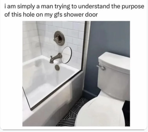 That’s even more confusing, why not forego the shower glass entirely and just have a shower curtain instead?