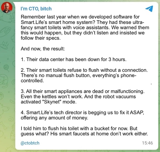 arrow-up11arrow-down1imageNo Connection, No Flushlemmy.mlcm0002@lemmy.world to Programmer Humor@programming.dev · 11 months agomessage-square0linkfedilink